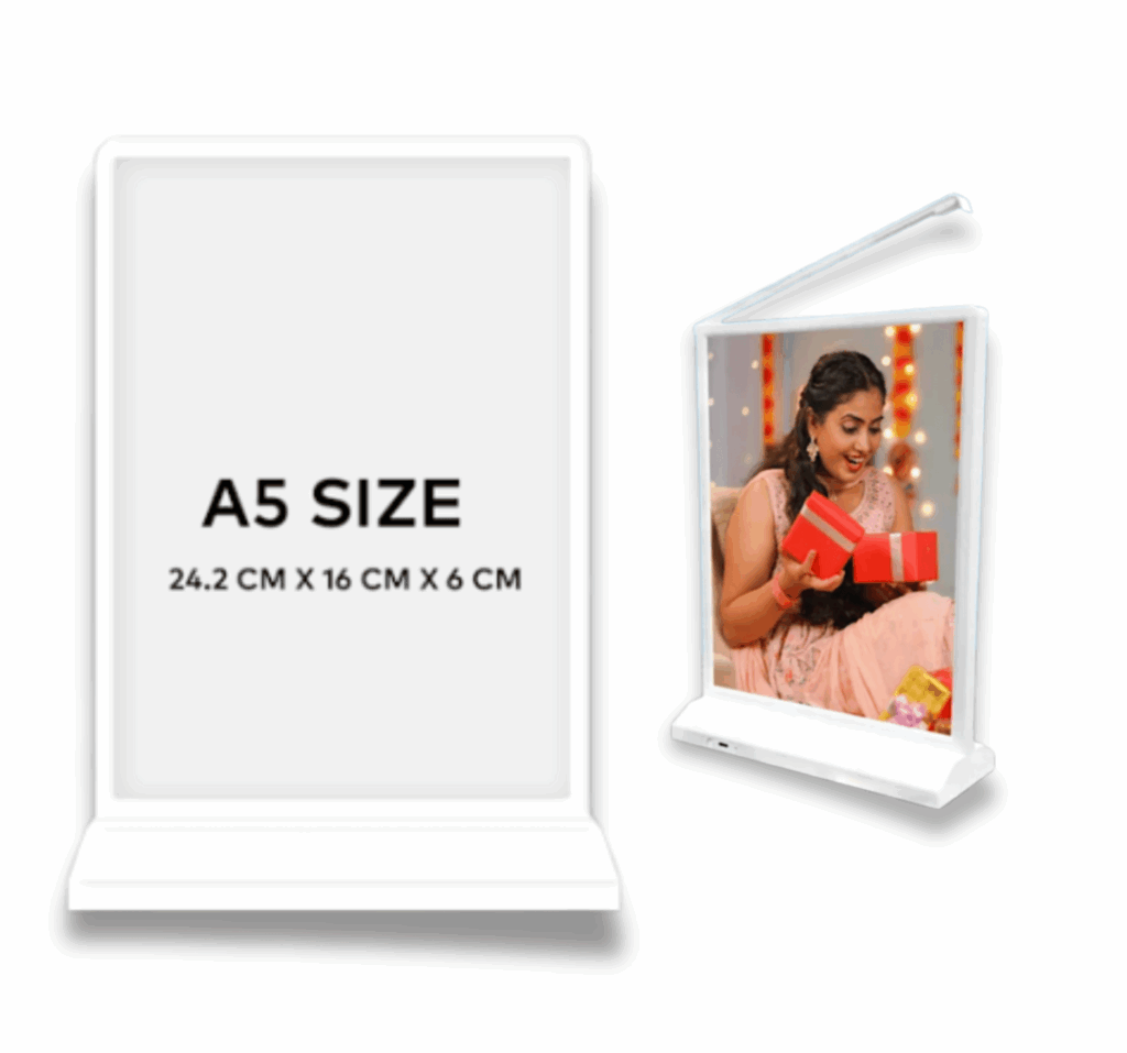A5 LED Panel: Double-sided, crystal-clear view. Rechargeable with 3 hours battery life. Type-C charging included.
