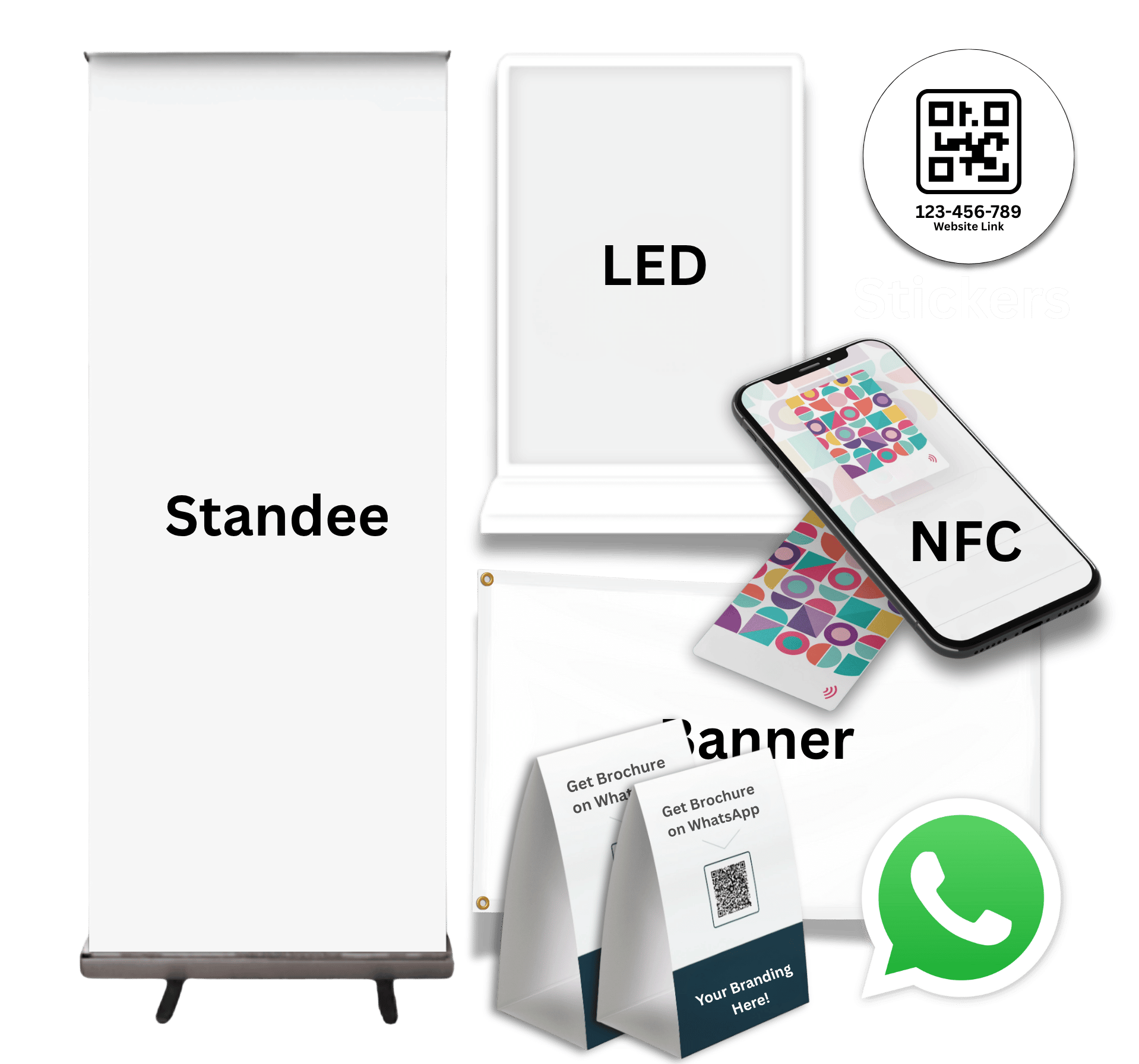 - 2x5 ft. WhatsApp QR Standee or A5 LED Display Stand