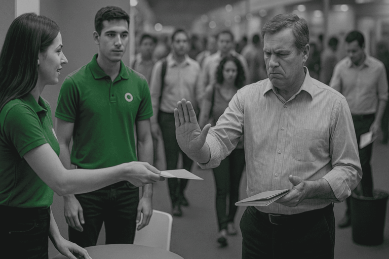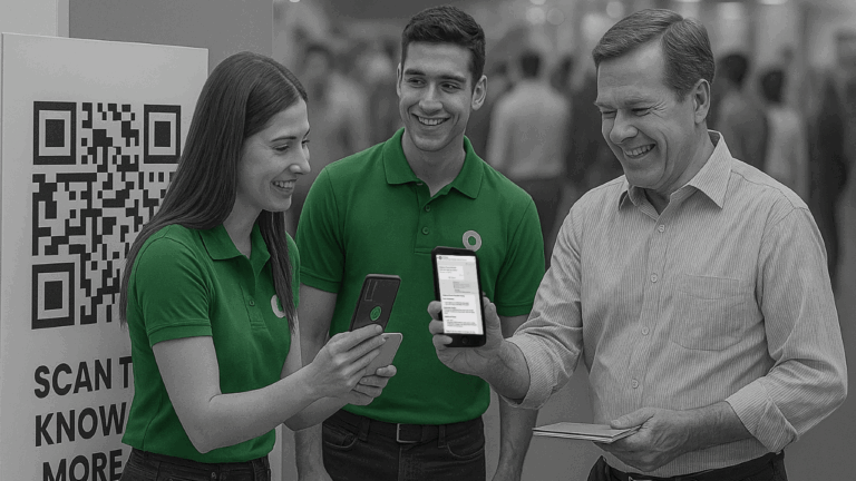 At every expo, visitors collect 20+ brochures and a pile of business cards — yours is just one of them.